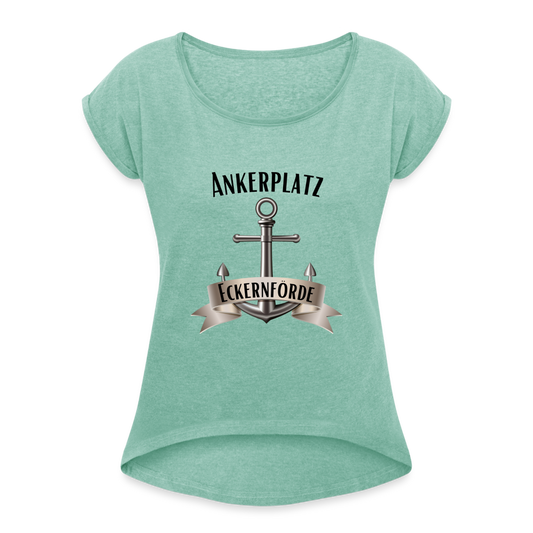 • Frauen T-Shirt mit gerollten Ärmeln - Lieblingsplatz Eckernförde - Minze meliert