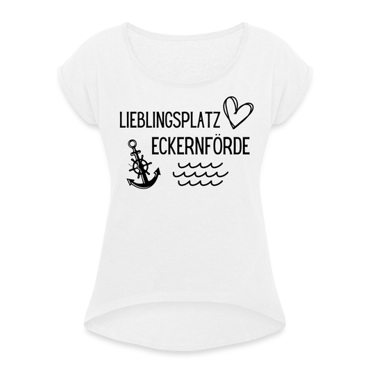 • Frauen T-Shirt mit gerollten Ärmeln - Ankerplatz Eckernförde - weiß