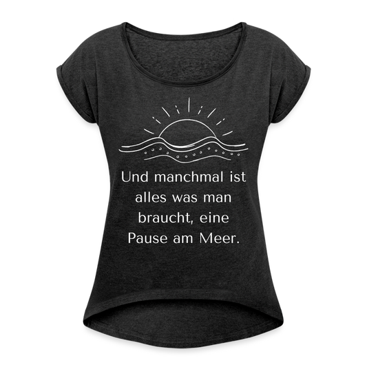 • Frauen T-Shirt mit gerollten Ärmeln - Pause am Meer - Navy meliert