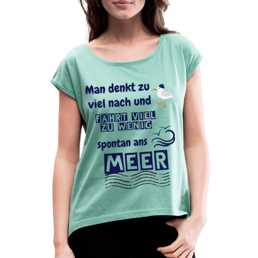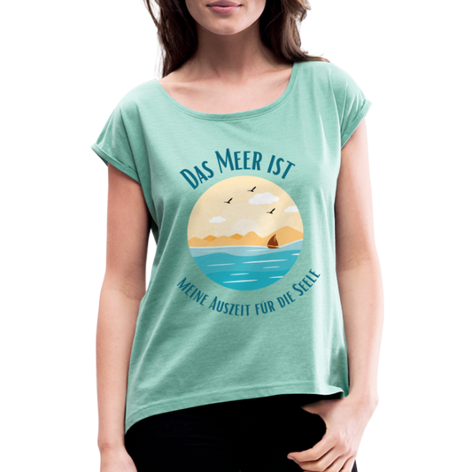 • Frauen T-Shirt mit gerollten Ärmeln - Spontan ans Meer - Minze meliert