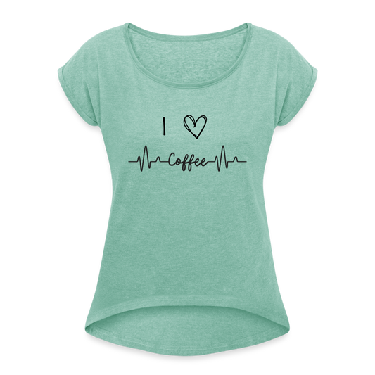 Frauen T-Shirt mit gerollten Ärmeln - I love Coffee