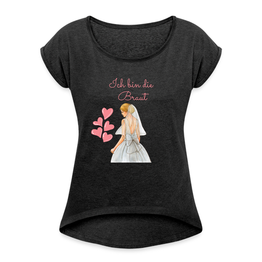 Frauen T-Shirt mit gerollten Ärmeln JGA - Ich bin die Braut