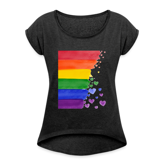 Frauen T-Shirt mit gerollten Ärmeln - LGBT Streifen