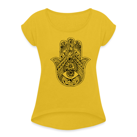AusverkauftFrauen T-Shirt mit gerollten Ärmeln - Hamsa