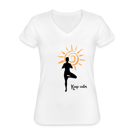Klassisches Frauen-T-Shirt mit V-Ausschnitt - Keep calm