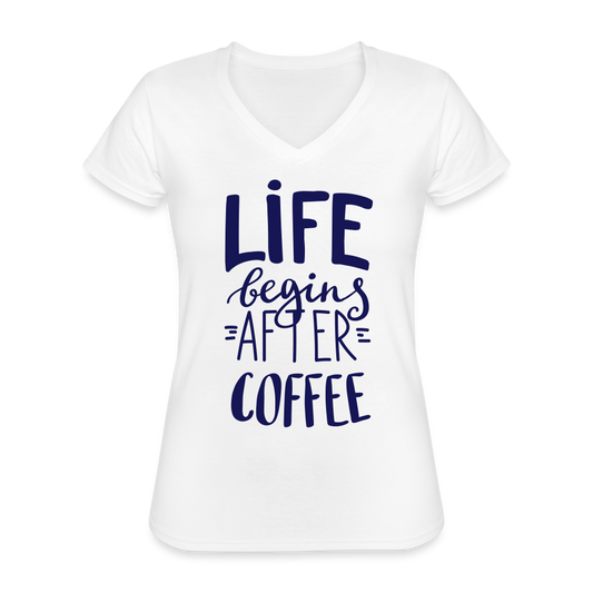 Klassisches Frauen-T-Shirt mit V-Ausschnitt - After coffee