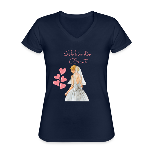 Klassisches Frauen-T-Shirt mit V-Ausschnitt JGA - Ich bin die Braut
